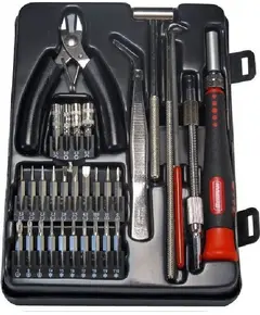 Το σετ αποτελείται συνολικά από 38 τεμάχια, εργαλεία και αξεσουάρ (bits), τα οποία ταξινομούνται σε πρακτική θήκη με μαγνητικό κλείσιμο. Μπορείτε επίσης να χρησιμοποιήσετε το σετ για την επισκευή και άλλων ηλεκτρονικών συσκευών, κοσμημάτων ή ρολογιών. Κατσαβίδι για κεφαλές bit...