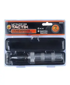 Χαρακτηριστικά Πλαγιοκόφτη 3″ από ειδικά ανοξείδωτο ατσάλι, για μεγαλύτερη αντοχή, πάχους 93mm. Τσιμπιδάκι ηλεκτρονικών από ανοξείδωτο ατσάλι, κυρτό, 120mm. Μίνι σφυρί ακριβείας από ανοξείδωτο ατσάλι. Γάντζος ακριβείας από ανοξείδωτο ατσάλι. Λίμα 120mm στρόγγυλης διατομής. Εύκαμπτη...