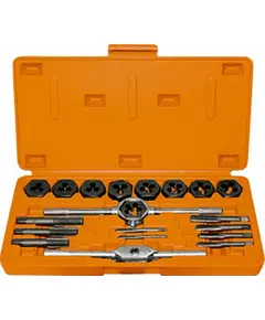 Περιλαμβάνει 1 τεμάχιο από φιλιέρες ( M3 x 0.5 , M4 x 0.7 , M5 x 0.8 , M6 x 1.0 , M8 x 1.25 & M10 x 1.5 ) 1 τεμάχια από κολαούζο ( M3 x 0.5 , M4 x 0.7 , M5 x 0.8 , M6 x 1.0, M8 x 1.25 & M10 x 1.5 ) 1 μανέλα φιλιέρων 1 μανέλα κολαούζων. 1 μεταλλική θήκη.