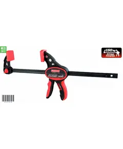 Περιγραφή Σφιγκτήρας μαραγκού σκανδάλης 2 λειτουργιών με ενισχυμένες πλαστικές δαγκάνες. Τεχνικά χαρακτηριστικά:  Ατσάλινη γαλβανιζέ μπάρα Βάθος σιαγόνων: 40mm Μήκος: 600mm