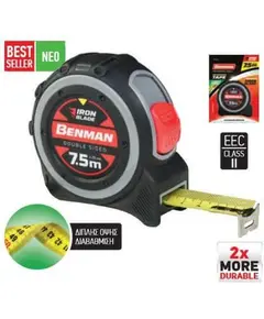 Περιγραφή Μετροταινία που διαθέτει λάμα με βαφή Nylon Powder, 2 φορές πιο ανθεκτική από τις κοινές. Άνετο αντιολισθητικό περίβλημα από καουτσούκ. Προστατευτικό που απορροφά τους κραδασμούς κατά την επιστροφή της λάμας. Σύμφωνη με το πρότυπο EEC Class II για την ακρίβειά της. Διπλής...