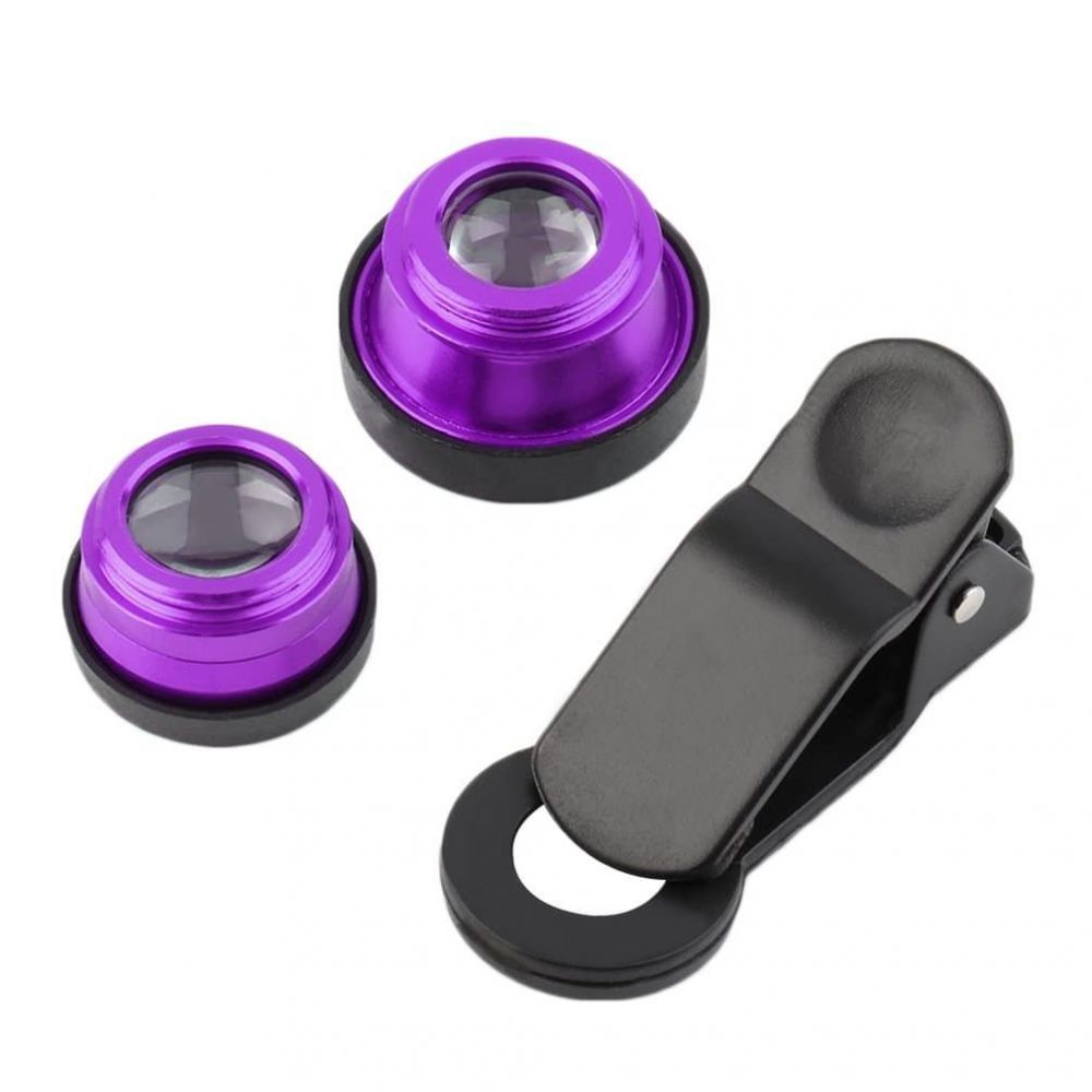Σετ 3 φακοί για κάμερες κινητών τηλεφώνων 3 σε 1 σε χρώμα μώβ