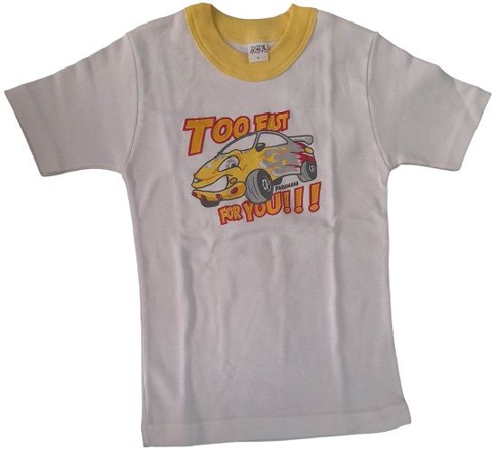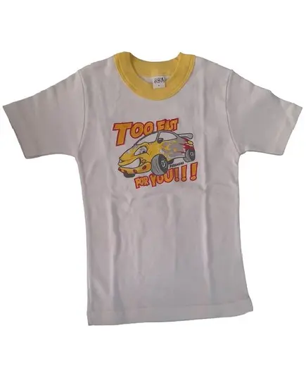 Φανελάκι κοντομάνικο άσπρο με κίτρινο και αμαξάκι Νο 6