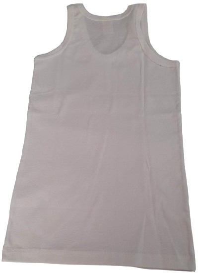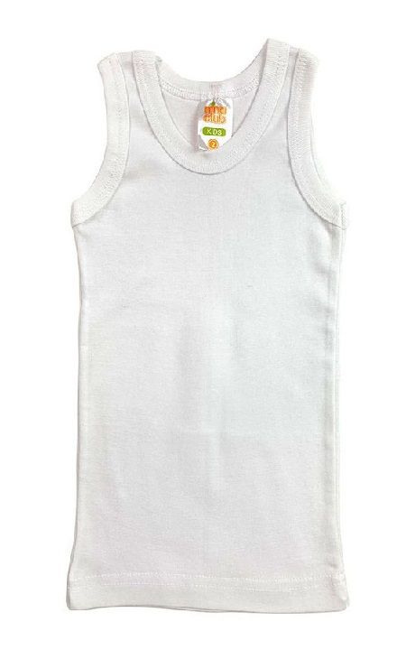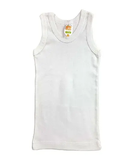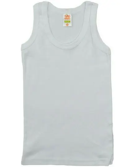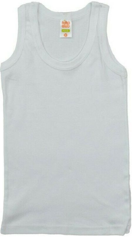 Παιδικό φανελάκι,άσπρο μονόχρωμο της εταιρείας Nina Club, αμάνικo χωρίς να περιορίζει το παιδί.