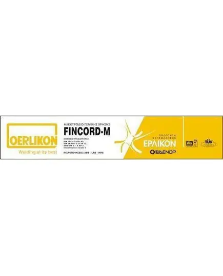 Ηλεκτρόδιο μέσης επένδυσης τύπου ρουτιλίου, κατάλληλο για κολλήσεις λεπτών ελασμάτων. Σε συνεχείς ραφές το Fincord-M κρατιέται σε επαφή με το αντικείμενο χωρίς κίνδυνο κυρτότητας του κορδονιού.