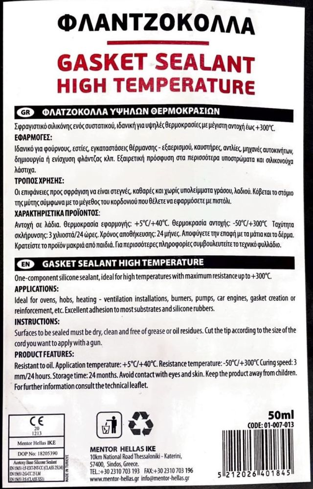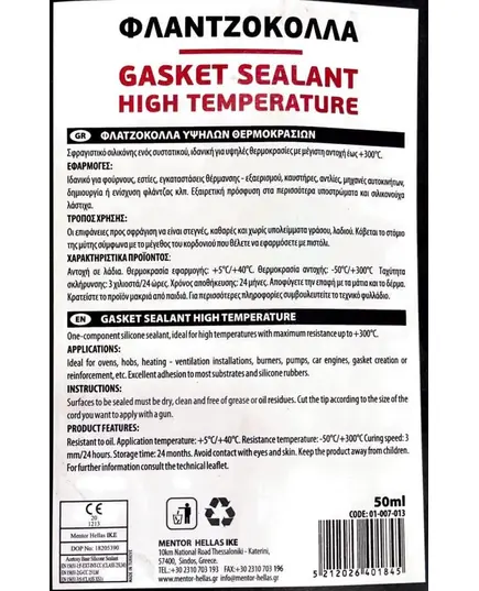 Φλατζόκολλα Κόκκινη Υψηλής Θερμοκρασίας (300°C) 50 ml MENTOR