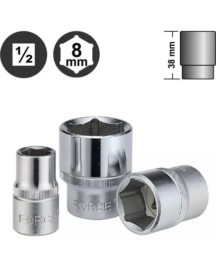 Force Καρυδάκι Εξάγωνο με Καρέ Υποδοχής 1/2" Διάμετρος 8mm