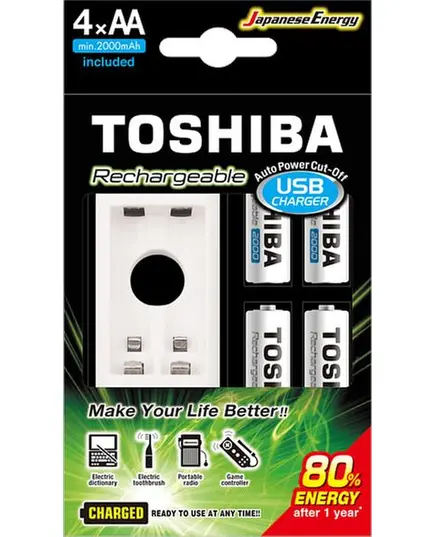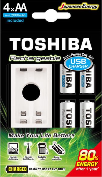 | Περιλαμβάνει | 4x Toshiba Rechargeable AA 2000mAh Batteries, 1x USB Charger |