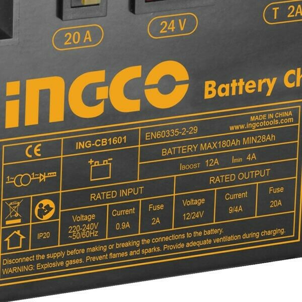 Φορτιστής μπαταριών αυτοκινήτου 12/24V INGCO CB1601