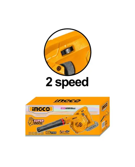 Φυσητήρας μπαταρίας 20V 2 θέσεων INGCO CABLI20018E SOLO, χωρίς μπαταρία και φορτιστή.