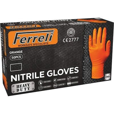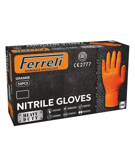 Γάντια Νιτριλίου Χωρίς Πούδρα σε Πορτοκαλί Χρώμα 50τμχ Ferreli