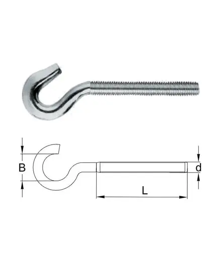 Γάντζος γαλβανιζέ με μετρικό πάσο Μ08 μήκους(L) 60 χιλιοστών