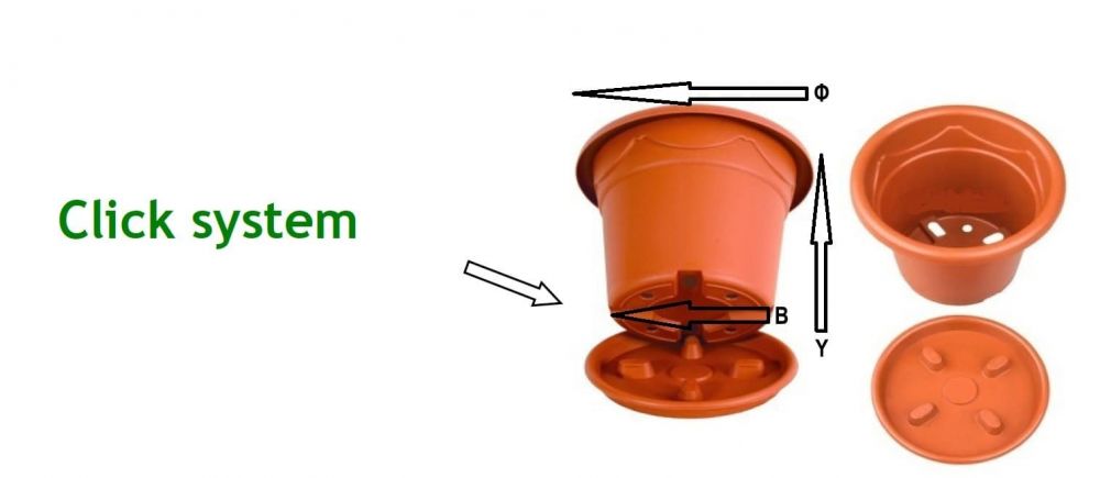 Γλάστρα πλαστική στρόγγυλη Φ150 (χ Υ120 χ Β125) Patrol Clematis terracotta με click system (το πιατάκι κουμπώνει)