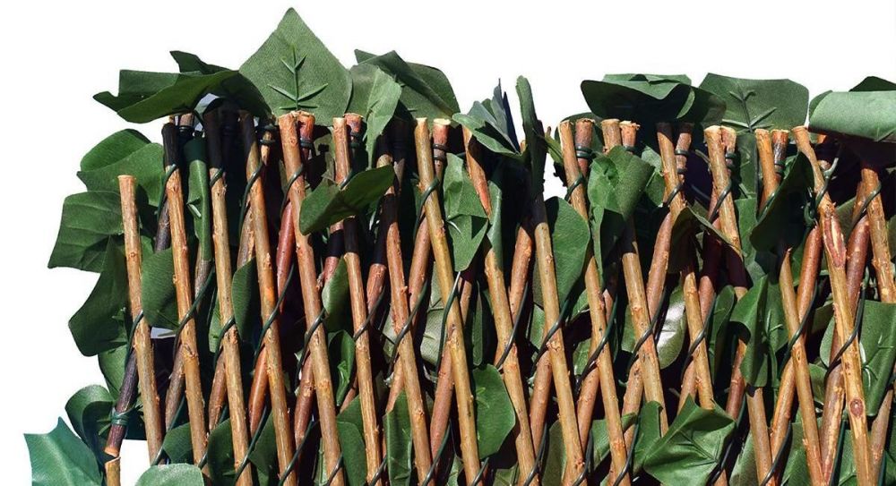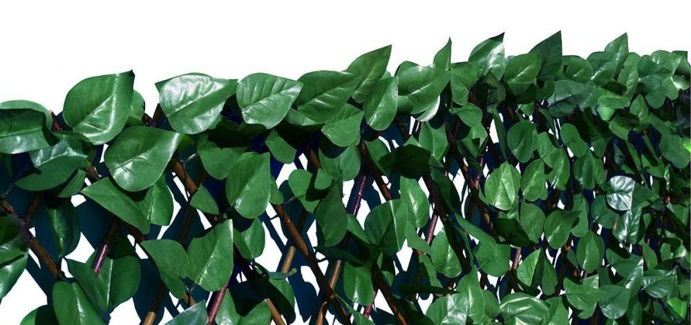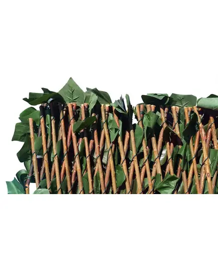 - Συνθετική φυλλωσιά κισσός με διπλό φύλλωμα και ξύλινη πέργκολα στην πίσω όψη.