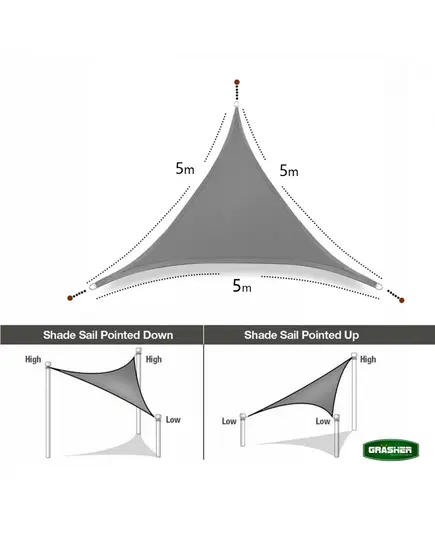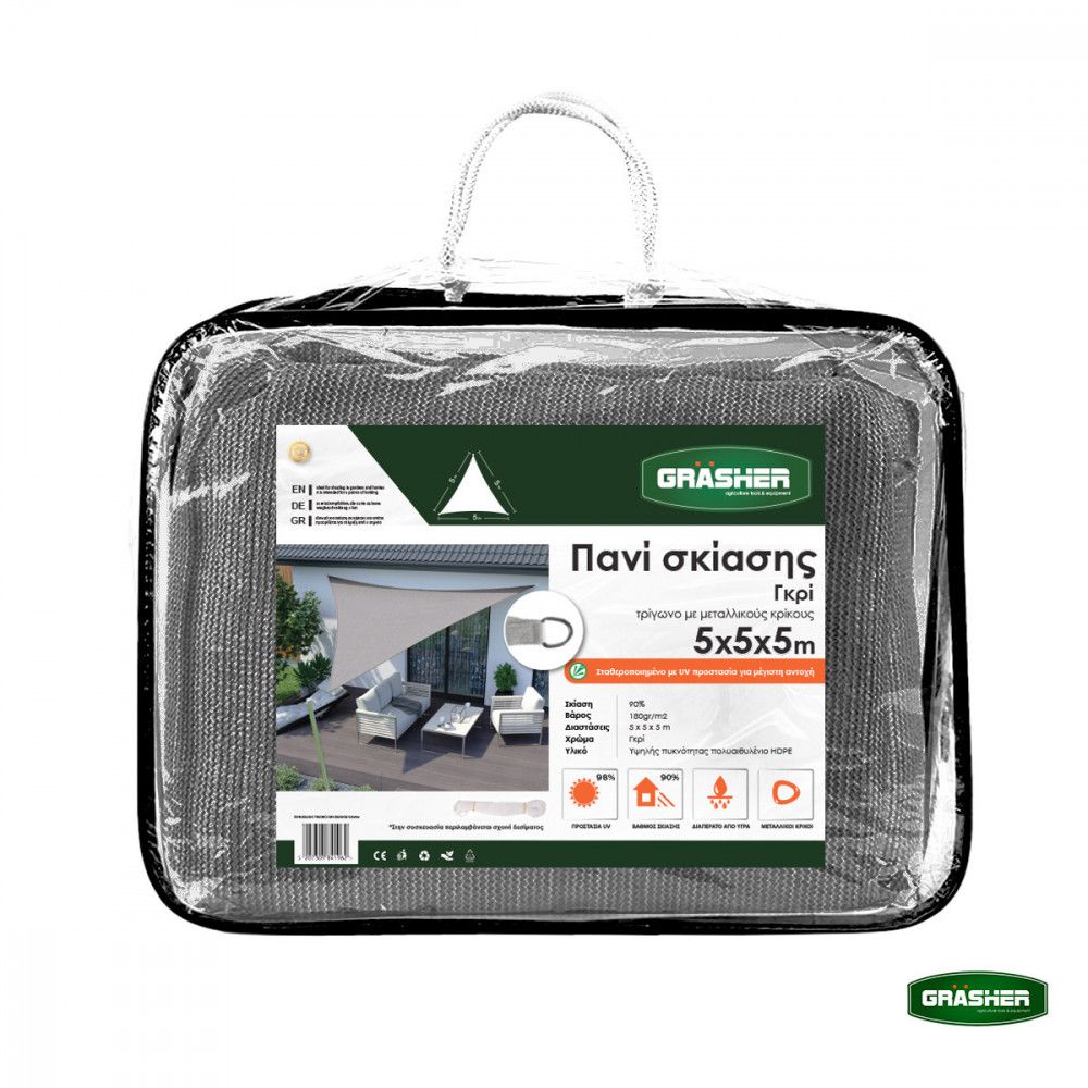 Αντιηλιακό Πανί σκίασης GRASHER Τρίγωνο - Γκρι 5m x 5m x 5m 103612
