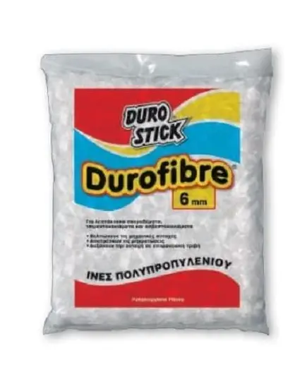 Οι ίνες πολυπροπυλενίου (PP) DUROFIBRE αποτελούν ενισχυτικό πρόσθετο του σκυροδέματος, των τσιμεντοκονιαμάτων και των ασβεστοκονιαμάτων. Η προσθήκη τους δημιουργεί ένα τρισδιάστατο πλέγμα, το οποίο λειτουργεί ως οπλισμός που εμποδίζει τη δημιουργία τριχοειδών ρωγμών (cracking) κατά την ξήρανση.
