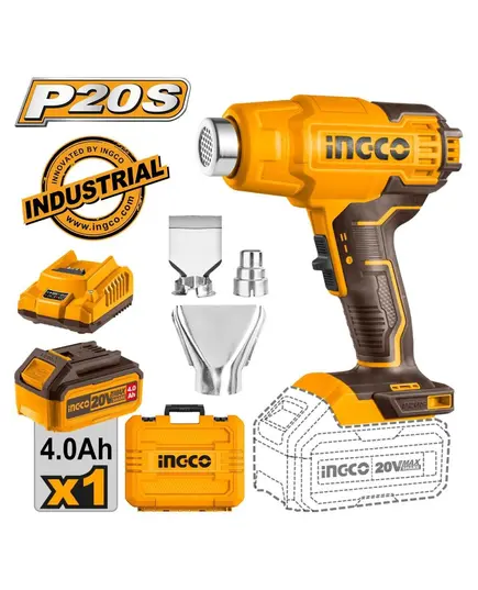 Ingco HGLI20025 Πιστόλι Θερμού Αέρα 20V 1x4Ah με Ρύθμιση Θερμοκρασίας εως και 550°C