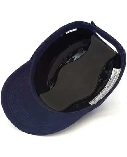 Κράνος ασφαλείας τύπου τζόκεϋ μπλε, κατασκευασμένο από ABS με ενιαίο εξωτερικό κέλυφος, με γείσο και οπές αερισμού, με ρυθμιζόμενο με velcro κεφαλόδερμα.
