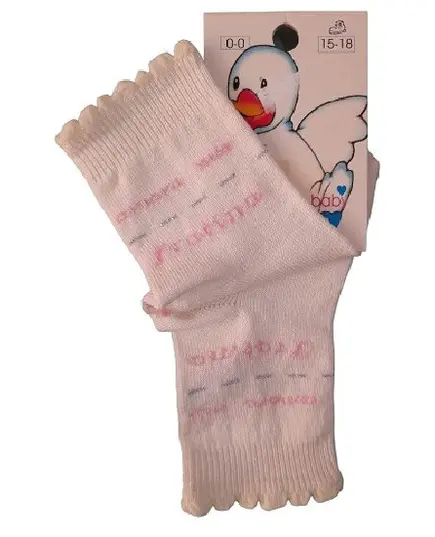 Καλτσάκια μπεμπέ No 15-18 μπεζ με ροζ γράμματα