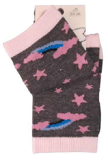 Καλτσάκια μπεμπέ No 23-26 ροζ - γκρι με ουράνιο τόξο