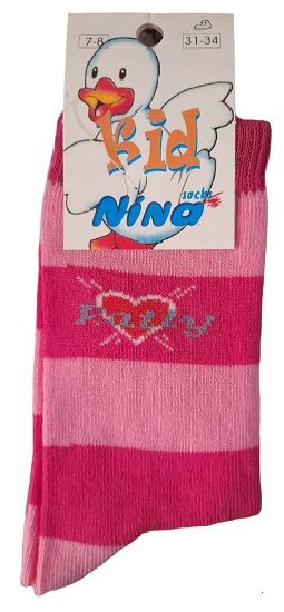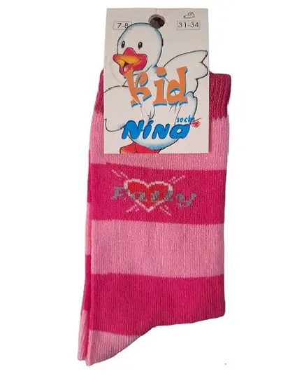 Καλτσάκια παιδικά No 35-38 ροζ ριγέ με καρδούλα