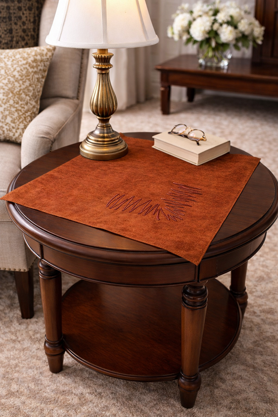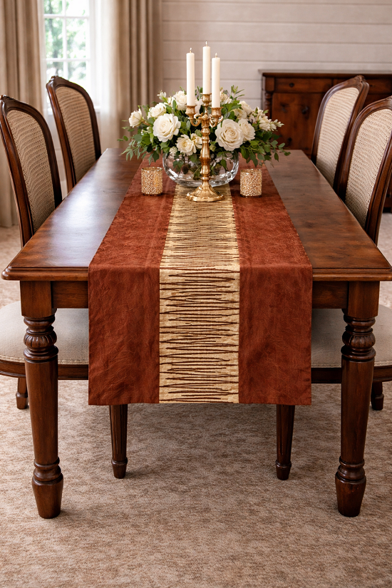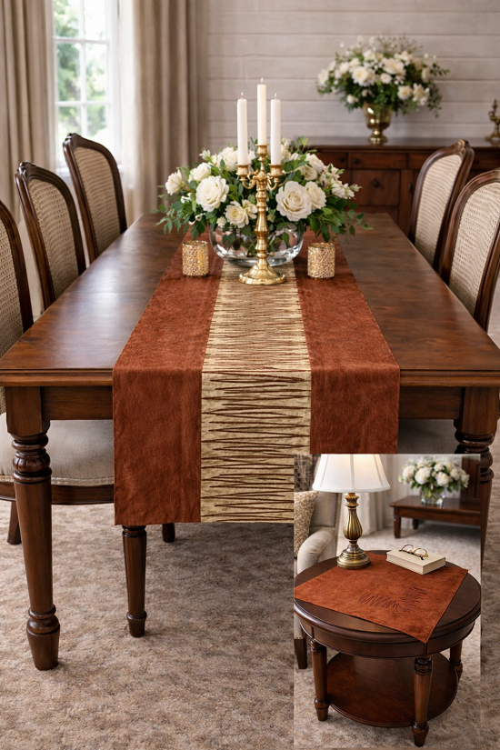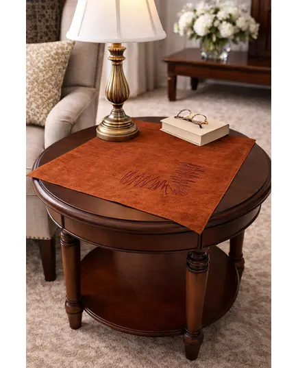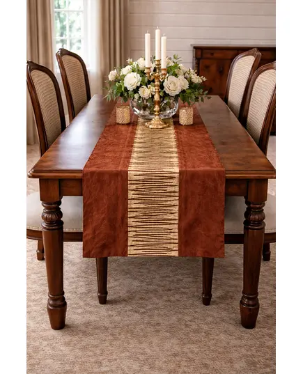 Σετ 3 τμχ. Τραβέρσα και Πετσετάκια με κέντημα Κεραμιδί-χρυσό