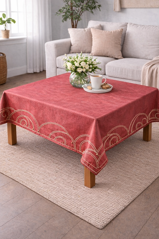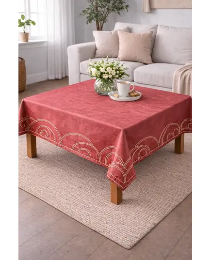 Καρέ Τραπεζομάντηλο με κέντημα 85x85εκ. Κεραμιδί-χρυσό