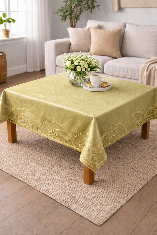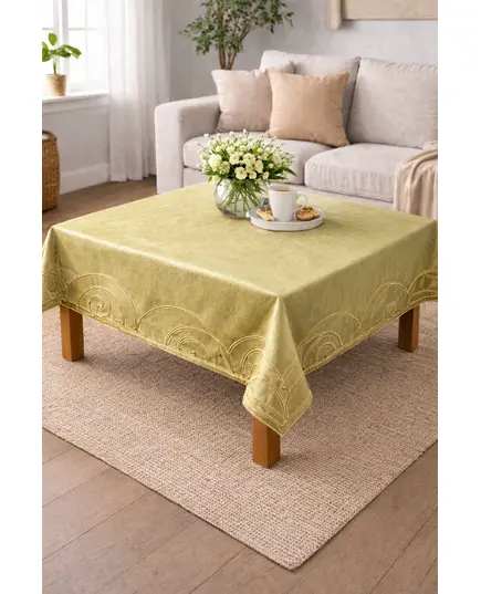 Καρέ Τραπεζομάντηλο με κέντημα 85x85εκ. Λαδί- χρυσό