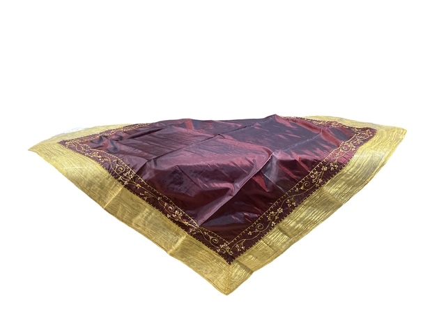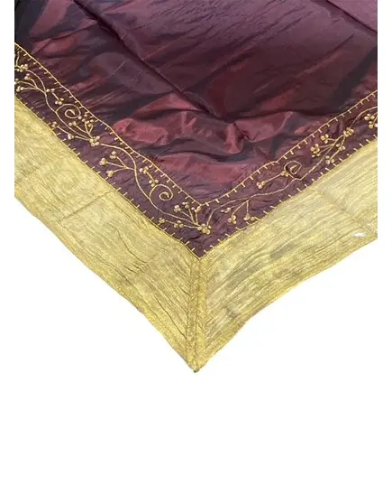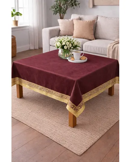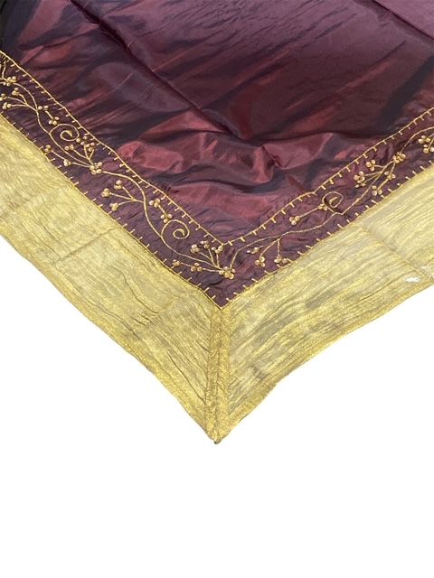 Καρέ Τραπεζομάντηλο με χάντρες 100x100εκ. Μπορντό-χρυσό