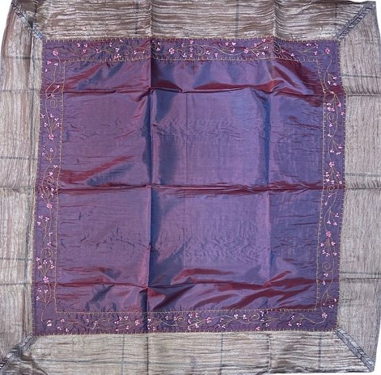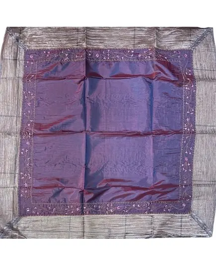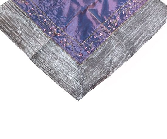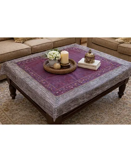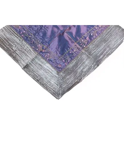 Καρέ Τραπεζομάντηλο με χάντρες 100x100εκ. Μωβ-ασημή.