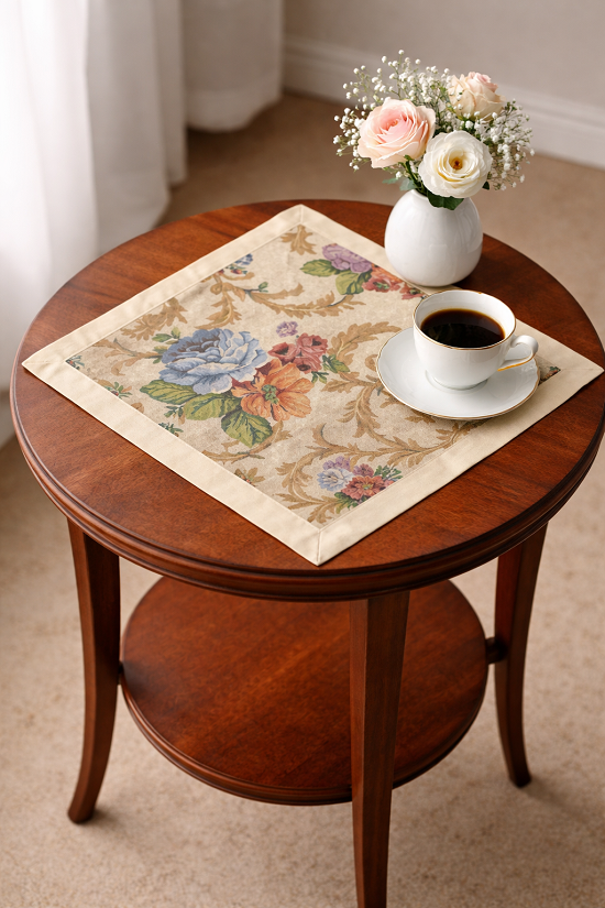 Το Καρέ Τραπεζομάντηλο Δαμάσκο με υπέροχο φλοράλ σχέδιο,προσφέρει μια τέλια επιλογή για να δώσει νέα πνοή στο σαλόνι σας.
