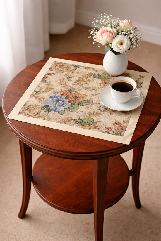 Το Καρέ Τραπεζομάντηλο Δαμάσκο με υπέροχο φλοράλ σχέδιο,προσφέρει μια τέλια επιλογή για να δώσει νέα πνοή στο σαλόνι σας.