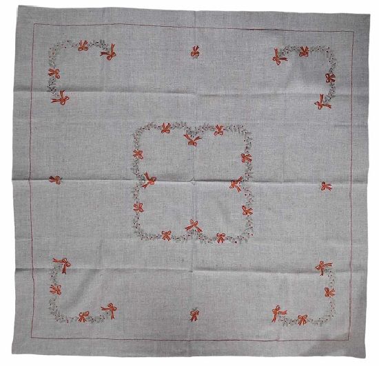 Καρές χριστουγεννιάτικος μπεζ με κεντητά φιογκάκια 1.30x1.30 cm