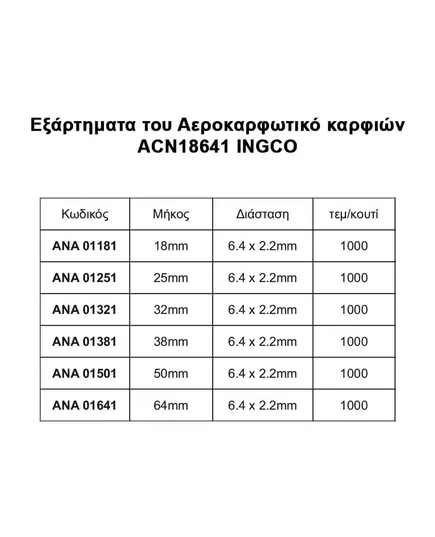 Καρφωτικό αέρος για καρφιά Ingco ACN18641
