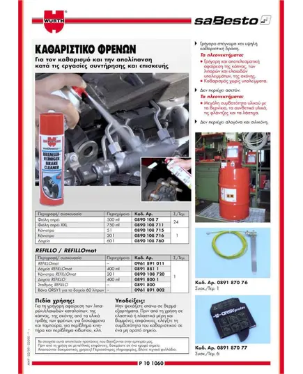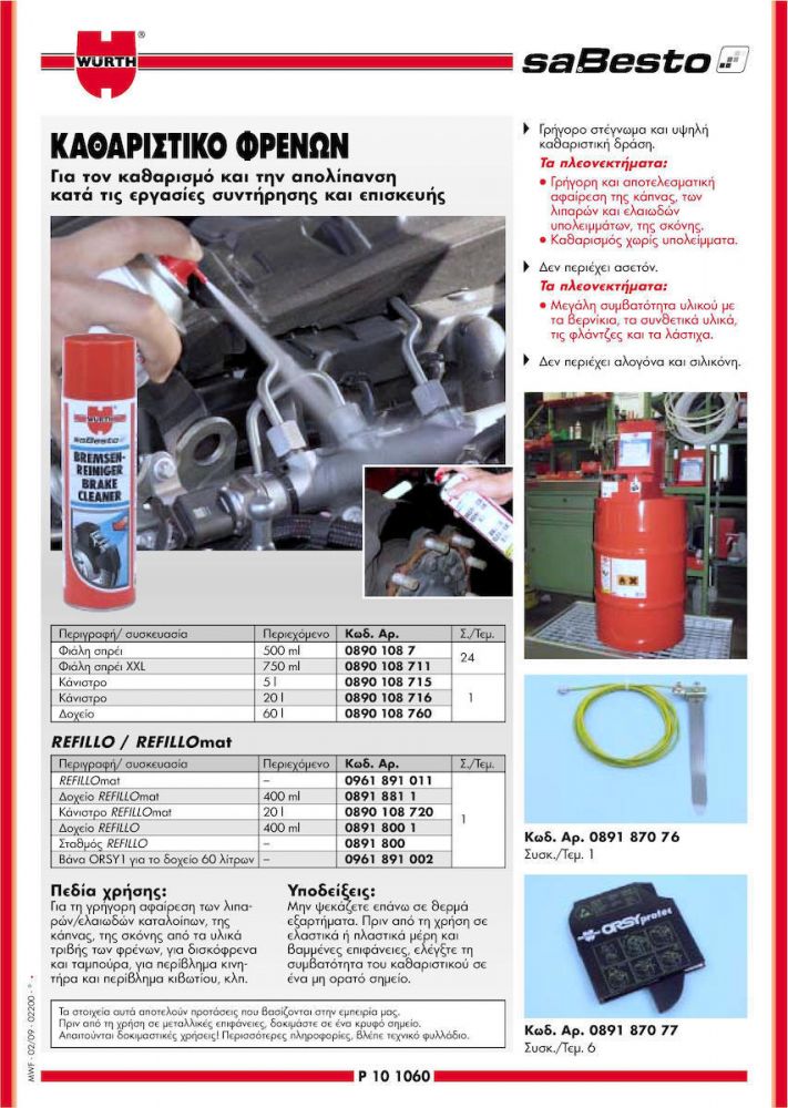 - Για την γρήγορη αφαίρεση των λιπαρών/ελαιωδών κατάλοιπων, της κάπνας, της σκόνης φρένων σε οχήματα, δισκόφρενα, ταμπούρα, περιβλήματα κινητήρα και κιβωτίου μετάδοσης, κ.λπ.