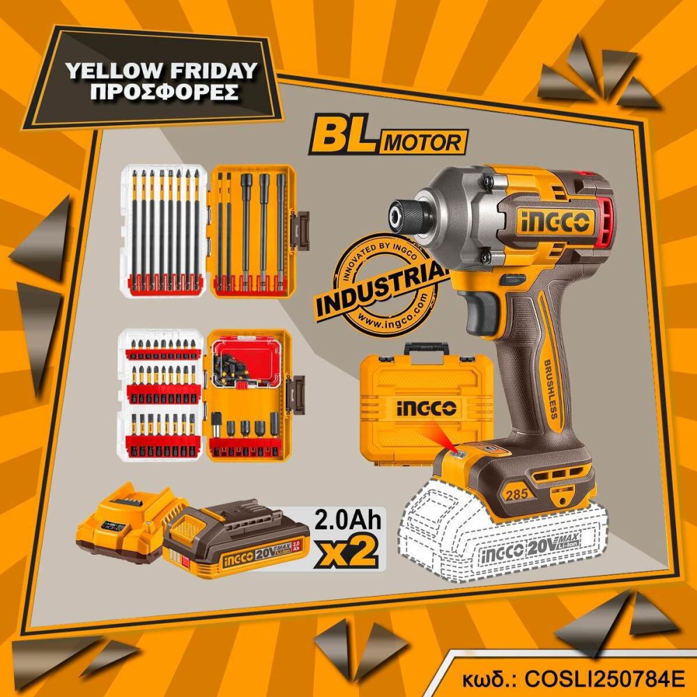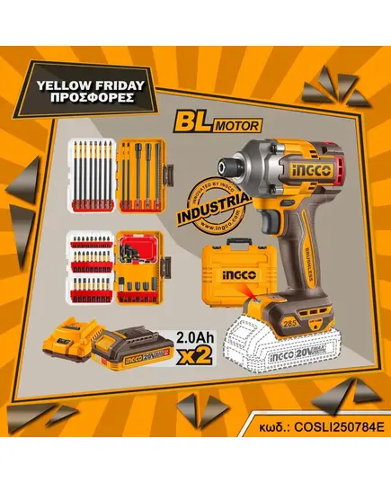 Κατσαβίδι Παλμικό Μπαταρίας 20V Li-Ion 285Nm + 2 Σετ Μύτες Impact COSLI250784E