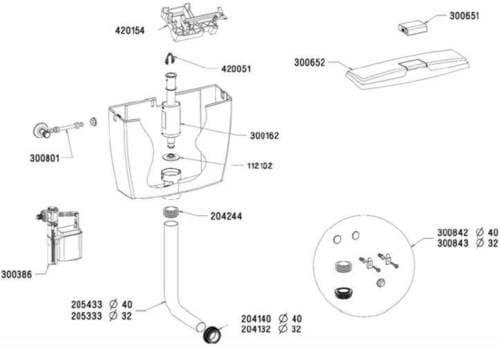 Περιλαμβάνει φλοτέρ & σωλήνα σύνδεσης με την λεκάνη