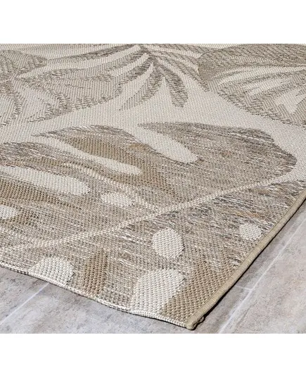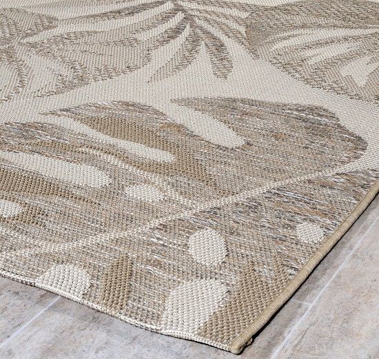 Χαλί μηχανής 160x230 από τη σειρά Novo της εταιρείας Tzikas Carpets, με tropical σχέδιo και μοντέρνο στυλ. Εκλεπτυσμένο χαλί με καλοδουλεμένη μίξη χρωμάτων σε μπεζ και εκρού αποχρώσεις. Ιδανικό για όλους τους χώρους, θα στολίσει το σπίτι σας τους καλοκαιρινούς μήνες, προσδίδοντας μία πινελιά πολυτέλειας. Μπορεί να τοποθετηθεί σε εσωτερικό ή και σε εξωτερικό χώρο. Είναι κατασκευασμένο από συνθετική ψάθα 100% frise πολυπροπυλένιο. Το βάρος του χαλιού είναι 1.700gsm. Το υπόστρωμα είναι υφαντό που το καθιστά ανθεκτικό στη χρήση και τις πλύσεις. Είναι αντιστατικό επομένως δεν μαγνητίζει χνούδια, μικροσωματίδια και σκόνη στην επιφάνειά του, ενώ το σκούπισμα με ηλεκτρική σκούπα είναι εύκολο και αποτελεσματικό. Τα χαλιά της εταιρείας Tzikas Carpets είναι υποαλλεργικά και φιλικά προς την υγεία και το περιβάλλον.