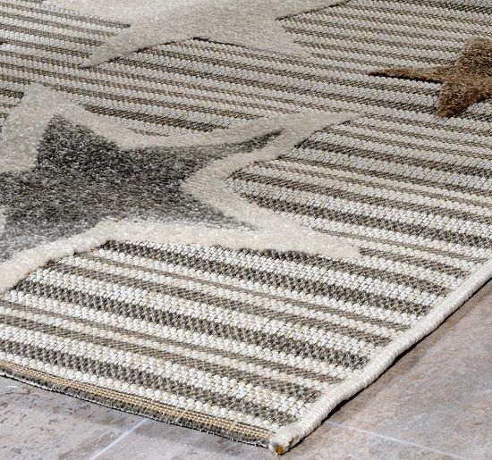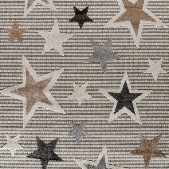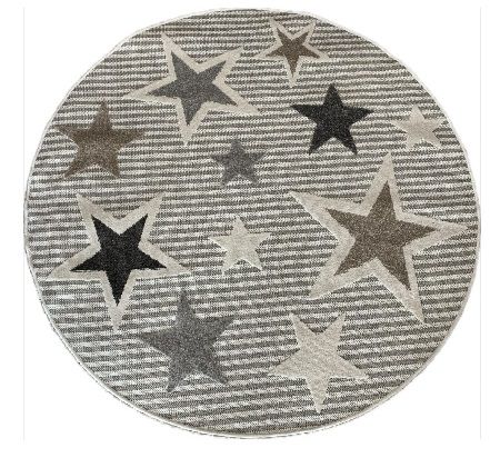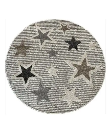 Χαλί μηχανής 4 εποχών διάμετρος 160εκ. από τη σειρά Mallorca της εταιρείας Tzikas Carpets. Έχει χαριτωμένο παιδικό σχέδιο με αστεράκια σε εκρού - γκρι βάση και καφέ - γκρι λεπτομέρειες. Ανθεκτικό χαλί στην σκληρή καθημερινή καταπόνηση από το παιδικό παιχνίδι. Μπορεί να τοποθετηθεί στο παιδικό ή βρεφικό δωμάτιο, αναβαθμίζοντας την αισθητική του. Iδανικό για όλες τις εποχές με μοναδική αίσθηση στο πάτημα, θα στολίσει το δωμάτιο του παιδιού σας καθόλη τη διάρκεια του έτους. Είναι κατασκευασμένο με ανεξίτηλα νήματα σύνθεσης 100% frise πολυπροπυλένιο και έχει ανάγλυφο σχέδιο. Το υπόστρωμα είναι υφαντό και καθιστά το χαλί ανθεκτικό στην χρήση και τις πλύσεις. Το βάρος του χαλιού είναι 1.300gsm και έχει πέλος ύψους 3mm. Είναι πλενόμενο και αντιστατικό, άρα το σκούπισμα με ηλεκτρική σκούπα είναι αποτελεσματικό και ο καθαρισμός του εύκολος. Τα χαλιά της εταιρείας Tzikas Carpets είναι υποαλλεργικά και φιλικά προς την υγεία και το περιβάλλον.