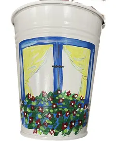 Διακοσμητικοί μεταλλικοί κουβάδες ζωγραφισμένοι στο χέρι. Λόγω του ότι είναι στο χέρι όλα τα κομμάτια είναι μοναδικά.