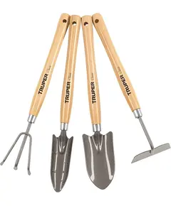 ΠΕΡΙΓΡΑΦΗ  Σετ 4 εργαλεία  Μήκος χειρολαβής 31cm  Ολικό μήκος εργαλείων 40 (τσουγρανα - τσαπακι) & 47cm (φτυαρακια)  Σε συσκευασία χαρτόκουτο