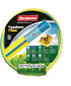 Λάστιχο ποτίσματος TechnoFlex Benman. Ανθεκτικό στην κακοκαιρία. Ανθεκτικό στις μεγάλες καταπονήσεις. Η20 κατάλληλο για τρόφιμα. Ελαφρύ και εύχρηστο. Δεν παραμορφώνεται. Οικολογικό.