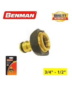 ΠΕΡΙΓΡΑΦΗ Συστολή ορειχάλκινη με πάσο 3/4'' και μειωτή 1/2'' Benman. Διαθέτει αντιολισθητικό σώμα.  Συνδέει τη βρύση με τον ταχυσύνδεσμο ποτίσματος. Χαρακτηριστικά Διάμετρος εισαγωγής: 3/4″ της ίντσας. Διάμετρος εξαγωγής: 1/2″ ίντσα. Κατάλληλο για αυτόματο σύνδεσμο.