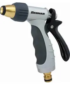 Πιστόλι ρυθμιζόμενο εκτόξευσης νερού σκανδάλη Benman. Εργονομικά σχεδιασμένο για άνετη χρήση, ανθεκτικό, με τρεις διαφορετικούς τρόπους ποτίσματος, κατευθυνόμενο, κωνικό και ομίχλης.