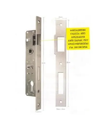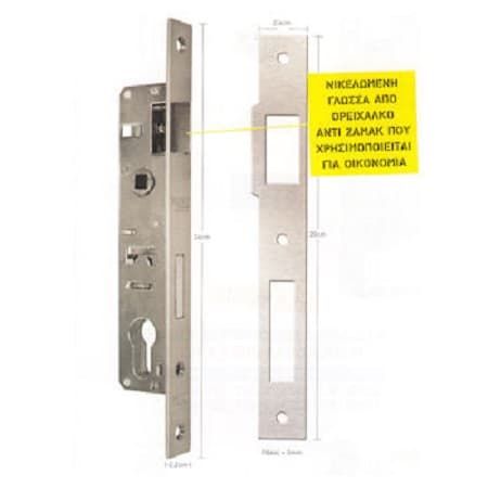 Κλειδαριά χωνευτή ασφαλείας αλουμινίου - σιδήρου στενή με κέντρο 25mm χωρίς κύλινδρο HUGO 60049