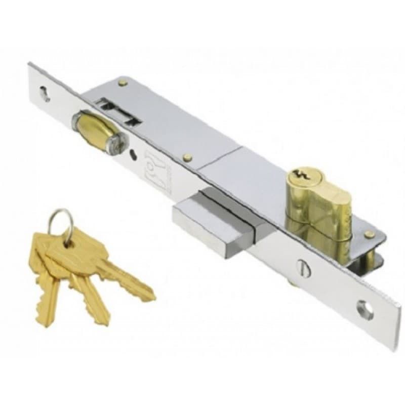 Κλειδαριά χωνευτή ασφαλείας DOMUS με μπίλια και κέντρο 20mm + κύλινδρος 54mm 92120