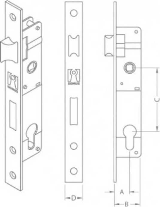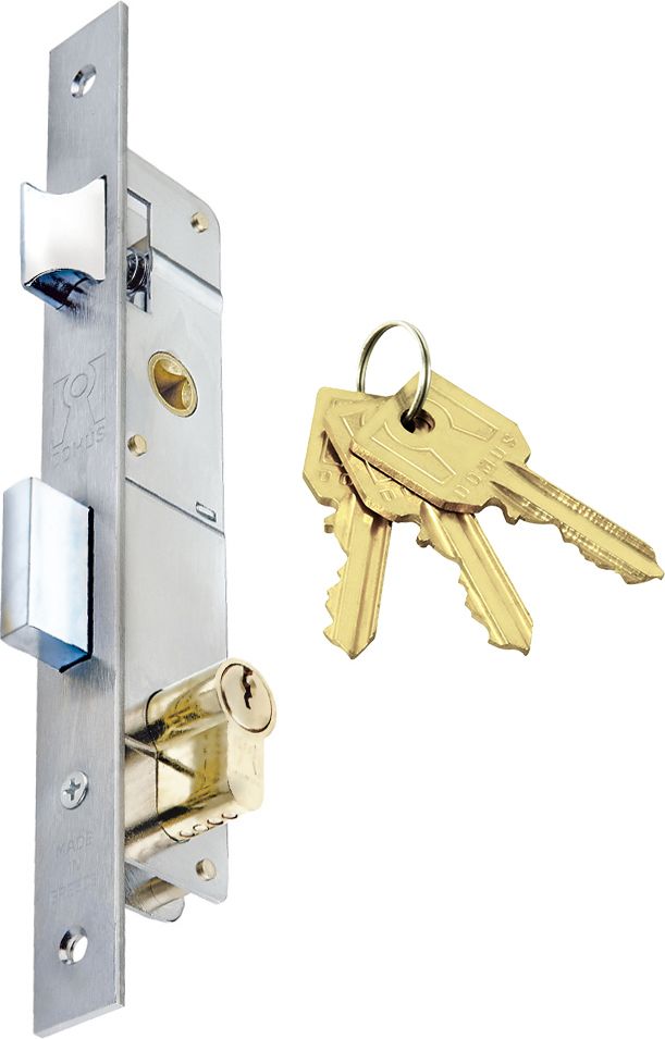 Κλειδαριά χωνευτή ασφαλείας ΓΛΩΣΣΟΥ DOMUS με γλώσσα 17mm και κέντρο 20mm + κύλινδρος 54mm