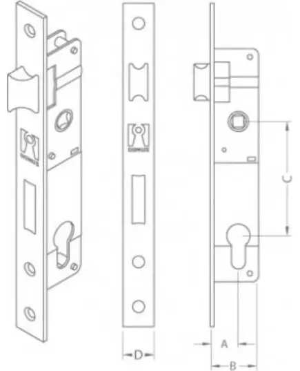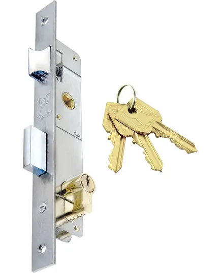 Η κλειδαριά Γλωσσού είναι κατάλληλη για σιδηρόπορτες και για στενά προφίλ αλουμινίου.