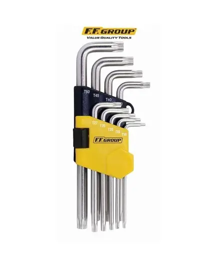 Η F.F. Group προσφέρει ένα σετ κλειδιών Torx εξαιρετικής ποιότητας, το οποίο αποτελείται από 9 τεμάχια. Τα χαρακτηριστικά του περιλαμβάνουν: