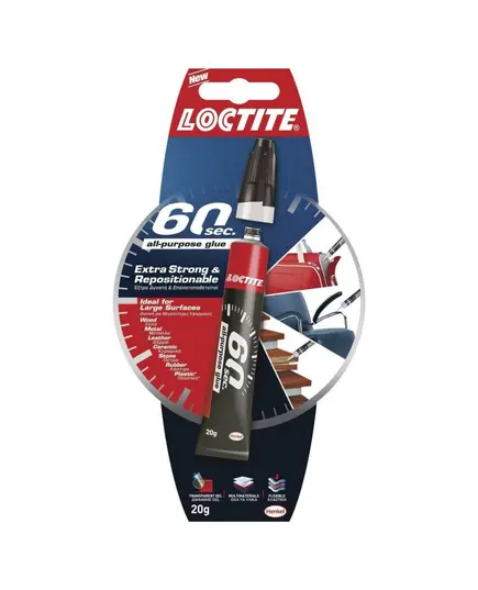 Η νέα Loctite 60 Sec. είναι η πρώτη κόλλα γενικής χρήσης που δεσμεύει μόνο 60 δευτερόλεπτα. Δεν περιμένετε πλέον και δεν πιέζετε! Φτιάχνει γρήγορα ισχυρούς δεσμούς μεταξύ μιας ευρείας γκάμας κοινών υλικών. Είναι η ιδανική κόλλα για οικιακή χρήση και η φόρμουλα χωρίς γέλη μπορεί να χρησιμοποιηθεί σε κατακόρυφες ή υπερυψωμένες επιφάνειες